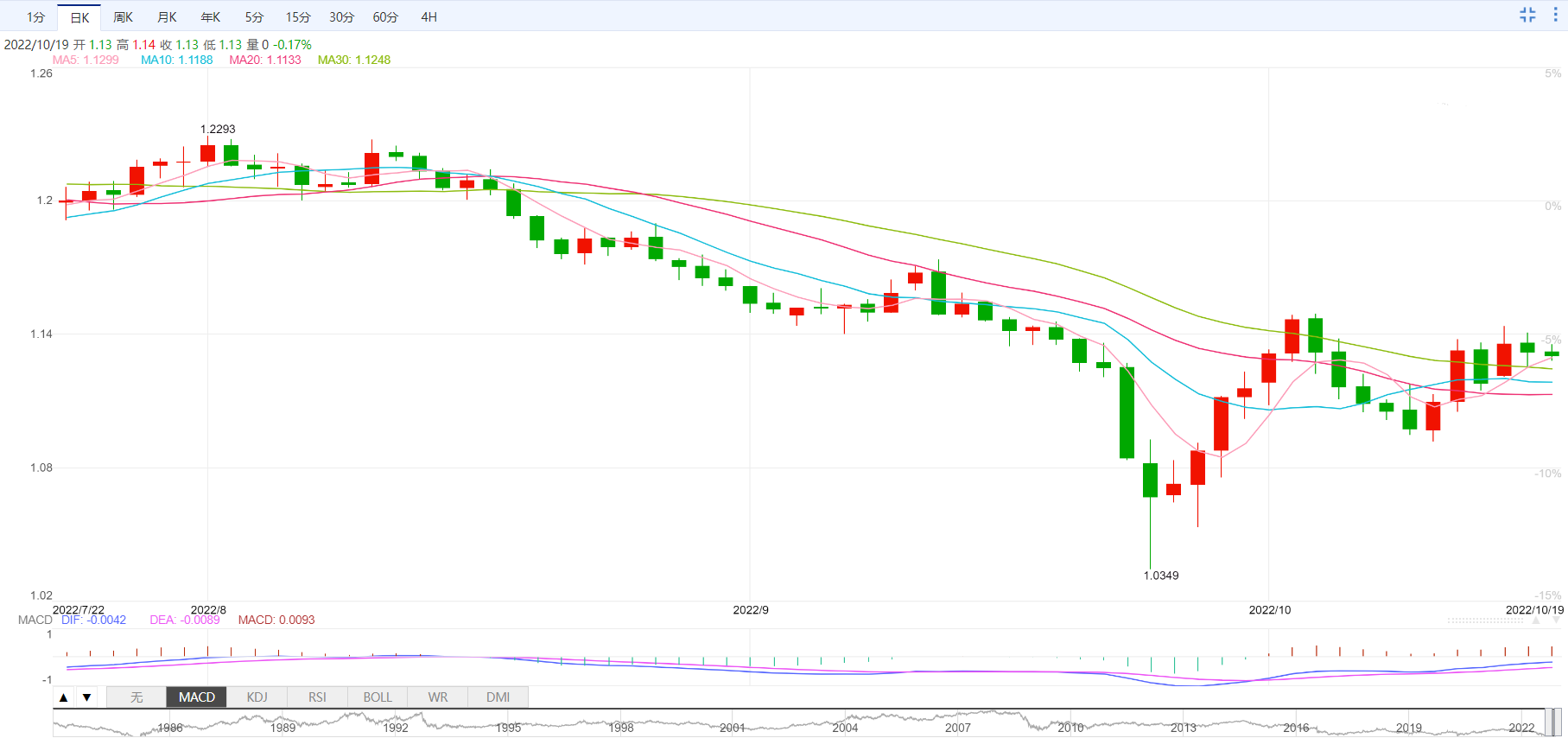 英镑兑美元从日低反弹了几个点,并重新攀升至1.1300大关之上。温和的反弹是由一些美元抛售的出现支撑的,尽管在英国政治不确定的情况下缺乏看涨信念。在最近的减税惨败之后,执政的保守党内部的反叛者正在聚集起来,以取代新当选的英国首相利兹·特拉斯。除此之外,有报导称英国央行将进一步推迟量化紧缩政策,以帮助稳定债券市场,这对英镑构成了不利因素,并限制了英镑/美元的汇率。日线图上的震荡位一直难以获得任何栋,这表明后续上行可能在1.1400-1.1410区域附近遇到阻力。随后是隔夜的波动高点,在1.1440区域附近,若突破该区域,英镑兑美元可能会攀升至月高点,略高于1.1500心理关口。
