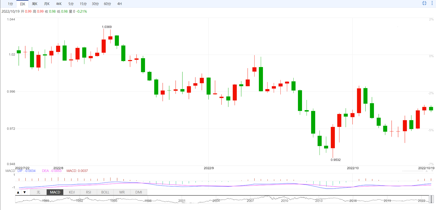 丹斯克银行预期1个月内欧元兑美元跌至0.97,3个月内跌至0.96,6个月内跌至0.95,12个月内跌至0.93。