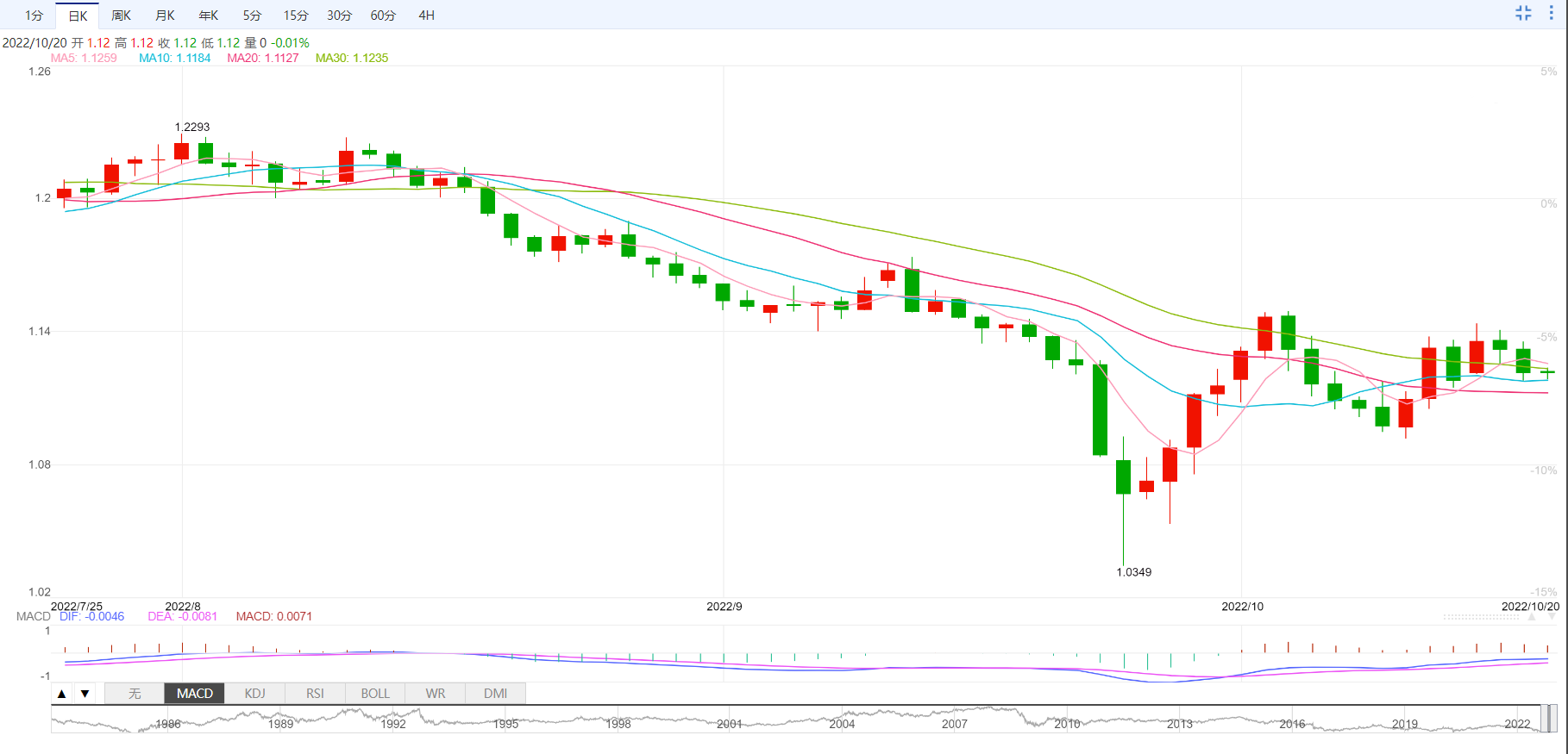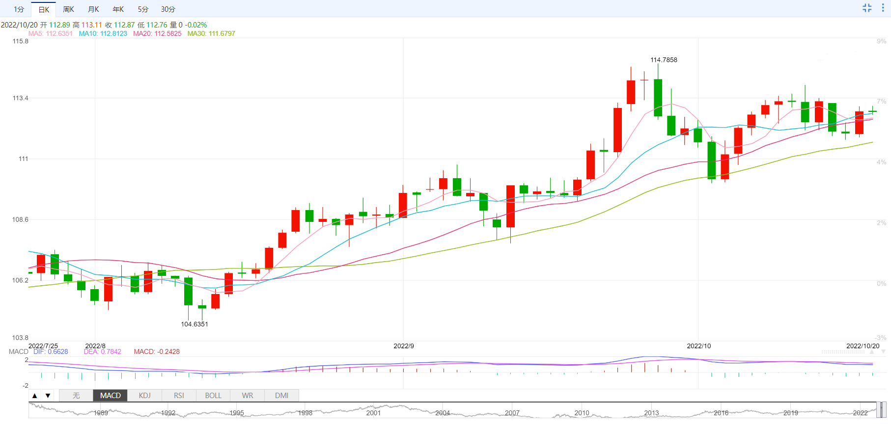 美元指数逆转了亚洲时段的涨势,当日下跌0.12%,目前刷新盘中低点至112.77。此前美国10年期国债收益率突破4.0%刷新14年高点,目前位于4.15%附近,而2年期收益率在2007年以来最高水平附近保持强势,盘中0.30%接近4.57%。应该指出的是,通胀上升并由此引发的主要央行激进加息担忧在此前推升了美债收益率和美元。