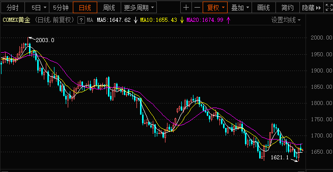 技术面:短线多头仍有机会,继续关注21日均线1666.21附近阻力,若能顶破该阻力,则金价有望进一步涨向55日均线1700关口附近。此外,10月11日高点1683.83附近也还存在一定的阻力。不过,200日均线、100日均线、55日均线仍向下倾斜,中长线下行风险仍未完全排除。周一录得带上影线的阴线,金价的反弹明显遭遇的空头的镇压,也需要提防金价重回跌势的风险。下方初步支撑在5日均线1642.14附近,1630关口也可以稍作留意,如果回落至该位置下方,则增加重回跌势的风险。