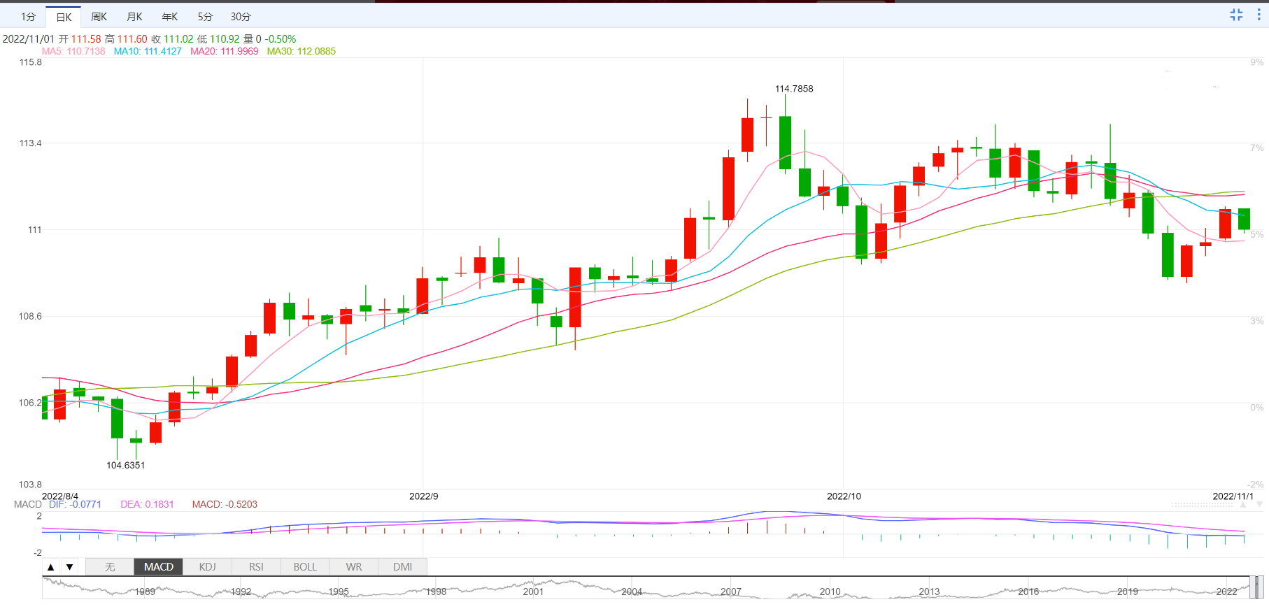 支撑位:110.98 110.38 110.03