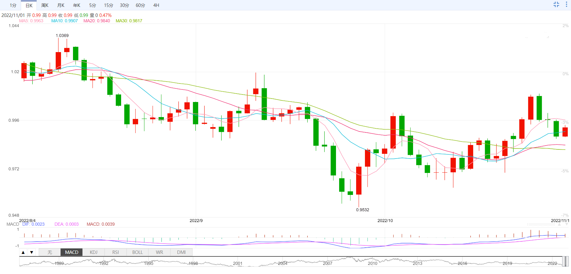 支撑位:0.9851 0.9815 0.9758
