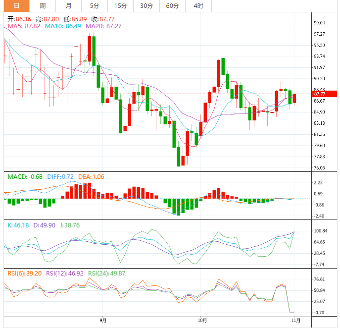 支撑位:86.88 85.9 85.21
