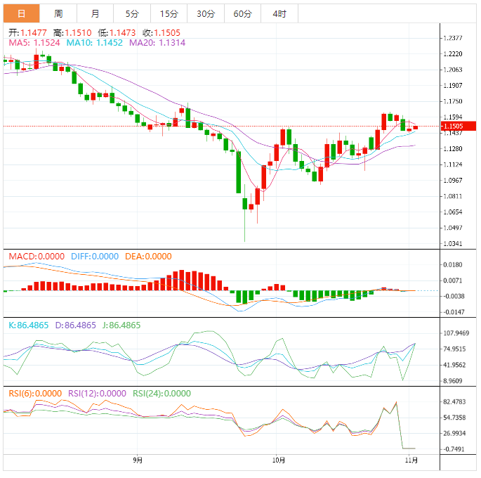 英国央行本周也将召开会议,预计也将加息75个基点。交易员预计,随后英国央行将放慢脚步,在12月加息50个基点。英镑兑美元周一曾下跌超过1%,周二有所反弹,收涨0.15%,报1.1478。