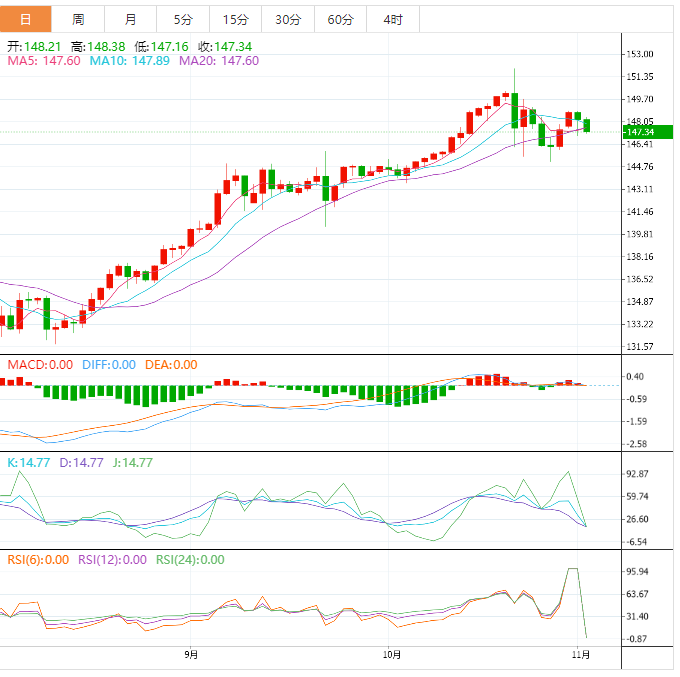 其他货币行情,纽元兑美元一度触及近1个半月的高位0.5901,最后收涨0.46%,报0.5839。周二澳元兑美元稍早下跌,即便澳洲第三季通胀率达到32年高位,澳洲联储仍坚持仅小幅加息25个基点。周二澳元兑美元最后收跌0.05%,报0.6393。