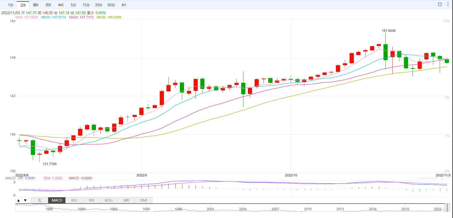 美元兑日元一度跌至145.67,随后有所反弹,最后收跌0.21%,报147.91。今年以来,美元兑日元已经上涨了约22%,导致交易员对可能的干预措施保持警惕。人们普遍认为,日本当局自9月以来已数次干预外汇市场,将日元从32年的低点拉回。