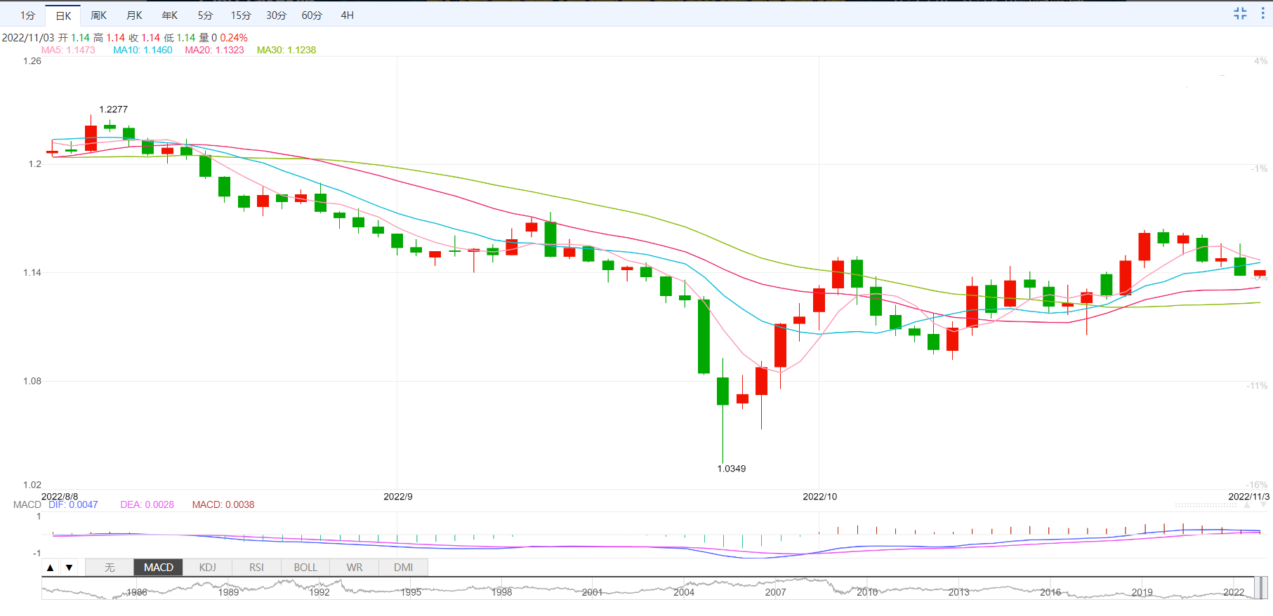周四亚洲时段,美元指数微跌,目前交投于111.88附近。美元在周三重拾升势,此前美联储主席鲍威尔表示,讨论暂停加息以对抗不断上涨的消费者价格还为时过早,因为“没有感觉到通胀正在下降”。