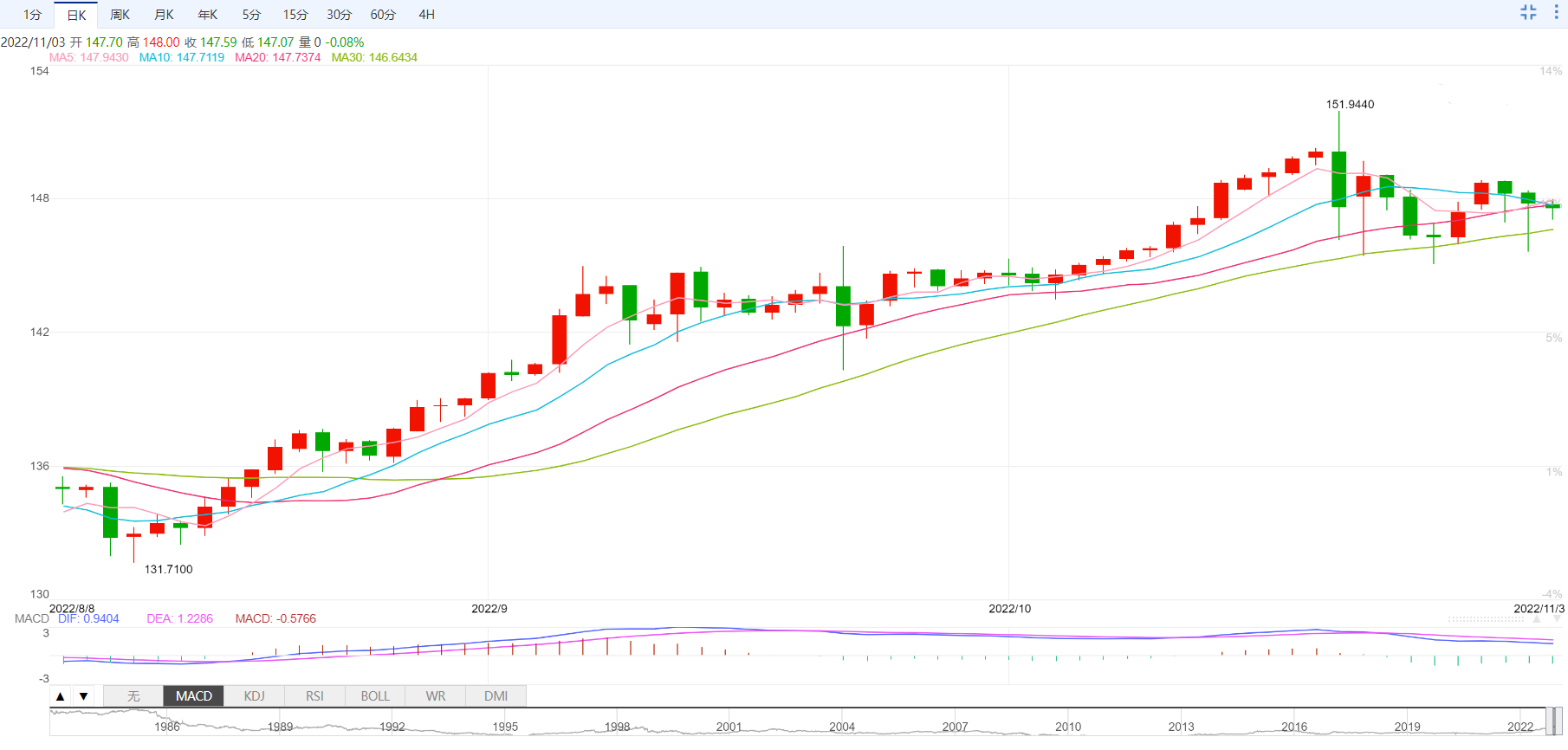 美元兑日元仍录得三连跌。汇价最新跌势可能与美元未能维持美联储利率决议后涨势有关。此外朝鲜向日本、韩国试射导弹引发的担忧也给带货币对带来下行压力。展望未来,日本市场休市可能限制美元兑日元反弹机率,而收益率疲软给该货币对带来下行压力,交易员等待美国ISM服务业指数,预计10月数据回落至55.5,前值56.7。之后周五发布的非农报告将是关键,主要是因为ADP就业数据强劲。若跌破21日MA均线147.60附近将指引美元兑日元空头指向六週前的上行支撑线,目前接近146.00。