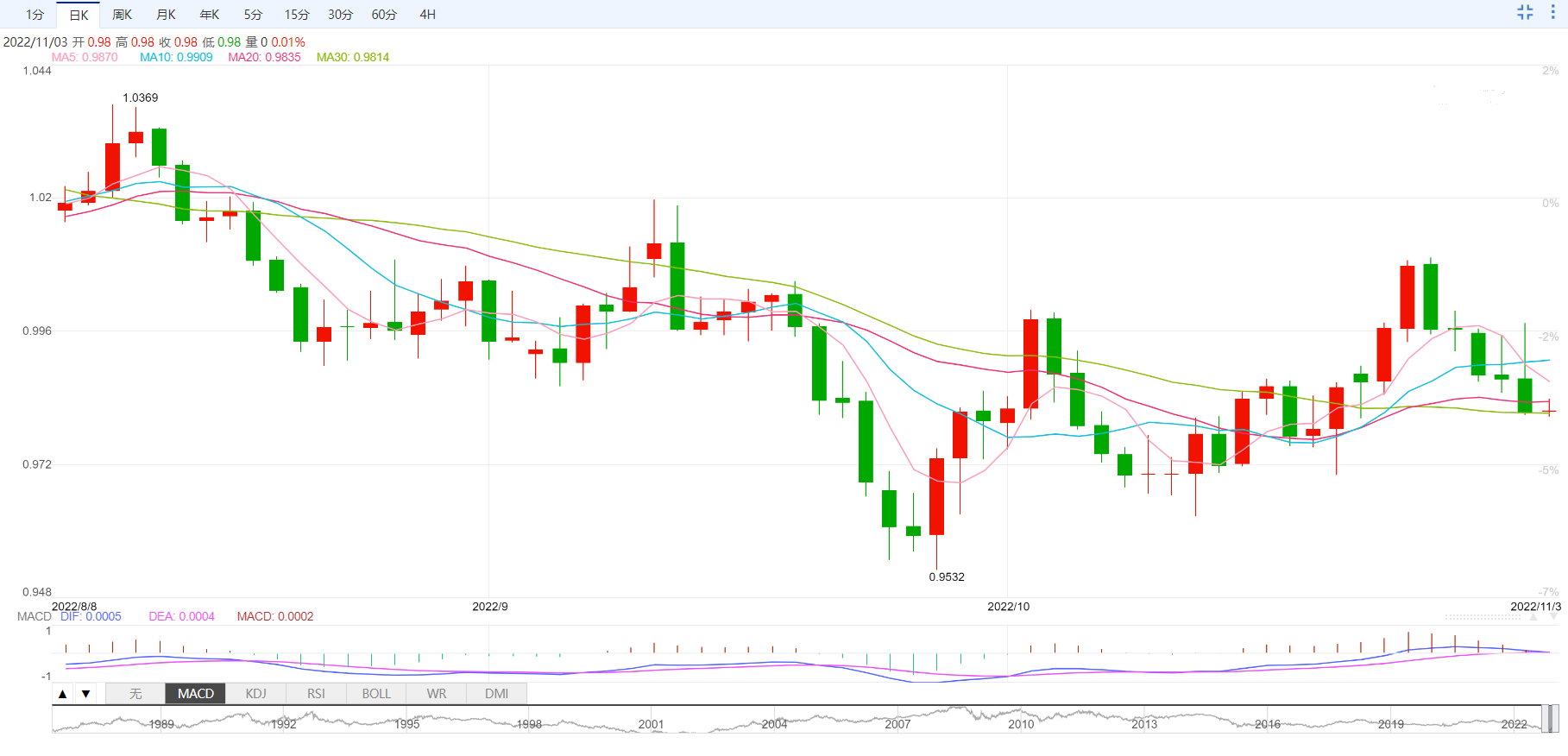 支撑位:0.9762 0.9706 0.9599