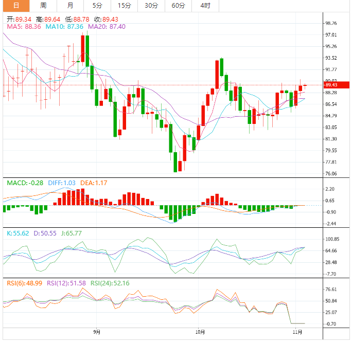 阻力位:89.42 90.87 92.89