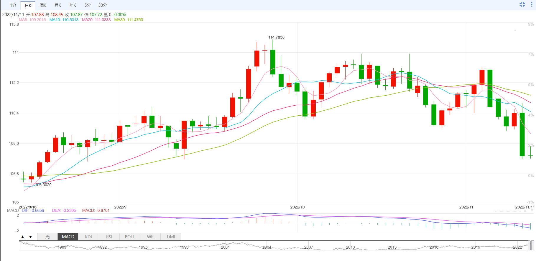 美元指数跌至近两个月低点107.70附近,展开弱势回调。预计美元指数将更快结束回调,原因是市场对美联储延续上调75个基点的预期正不断消失。标准普尔500指数期货出现了小幅调整,但这并不意味著标普500指数期货会出现反转。10年期美债收益率维持遇阻3.81%附近。