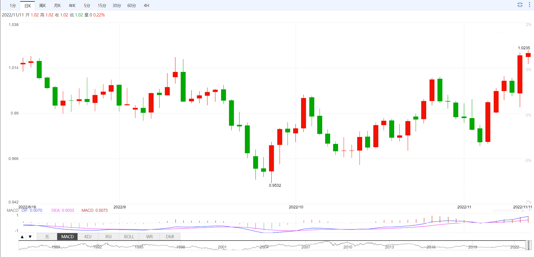 英镑兑美元稳步上扬,接近两个月来的高点1.1738。美国通胀压力明显回落,提振风险货币。市场情绪积极,大为提高投资者风险偏好。美国整体消费价格指数(CPI)降至7.7%,低于期值8.0%;核心通胀降至6.3%,低于预期的6.5%。这阻止有关美联储将提高终端利率的传言,因为价格压力已显示出明显上升势头枯竭的迹象。另外,有关美联储主席鲍威尔不会继续上调75个基点的利率週期,经济衰退和经济前景不乐观的前景回落等类似这样的分析甚嚣尘上。