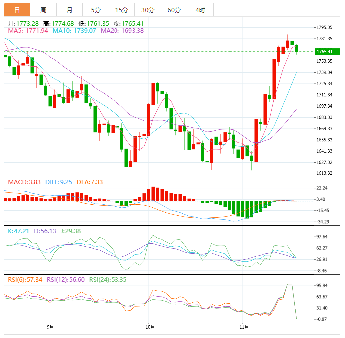 现货黄金震荡走弱,一度下跌0.6%,创三个交易日新低至1762.98美元/盎司,一方面,市场对地缘局势可能升级的担忧情绪降温,另一方面,隔夜美国零售销售数据强于预期,美联储多位官员发表鹰派讲话,帮助美元反弹;此外,金价多次未能顶破1786.36附近阻力,也引发部分多头获利了结。