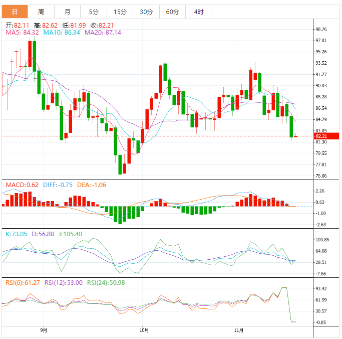支撑位:83.8 81.42 79.28