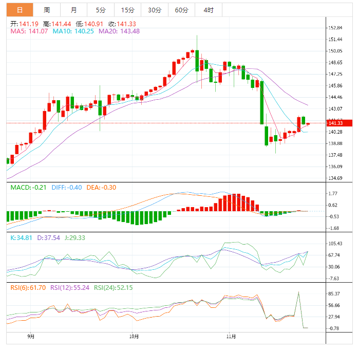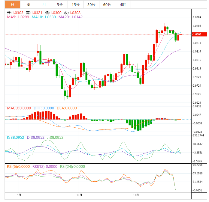 周三盘中,美元指数窄幅震荡于107.15附近;隔夜美元指数下跌0.6%,收报107.16,回吐了周一的大部分涨幅,主要是市场暂时摆脱了对亚洲疫情的担忧,股市、大宗商品和风险较高的货币普遍上涨。欧元兑美元周二上涨0.62%,收报1.0302,结束了之前的连续三天下跌。英镑兑美元周二上涨0.52%,收报1.1882,此前数据显示,英国政府10月借款少于预期,尽管由于能源补贴措施和经济放缓,预算赤字在未来几个月可能会膨胀。