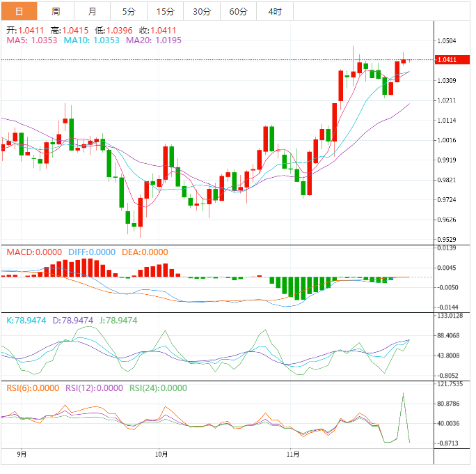 周五盘中,美元指数低位徘徊,目前交投于105.87附近,此前美元指数连续三个交易日下跌,周四最低触及0.27%,收报105.85,跌幅约0.27%,下方关注200日均线105.33附近支撑;此前公布的美美联储11月会议记录支持了将从12月会议开始放缓加息幅度的观点,对美元拖累明显,即使周四是美国感恩节假期。