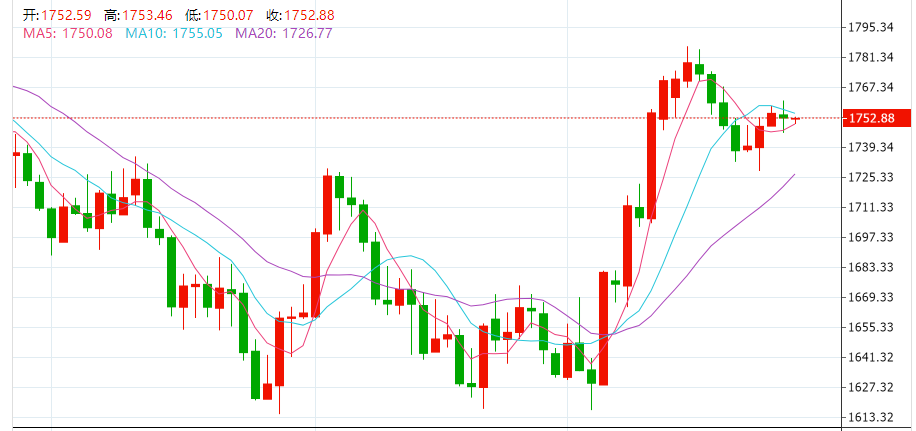 上周五(11月25日),现货黄金随着美元涨跌而波动,盘中从1760上方最低跌至1745,随后回升至1750上方,最终收跌0.13%,报1753.55美元/盎司;现货白银收跌0.25%,报21.45美元/盎司。