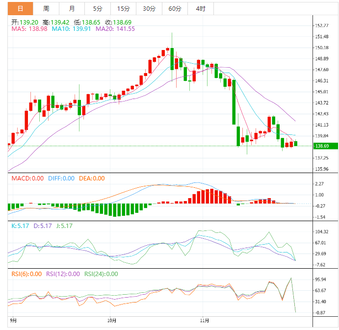 美元上周五在美国感恩节假期后的淡静交投中全面走高,但仍保持在数月低位附近,美联储放缓政策紧缩步伐的前景仍造成压力。欧元兑美元上周五下跌0.24%,收报1.0385美元,但仍离11月中触及的四个月高位1.0481美元不远。上周,欧元兑美元上涨0.64%。美元兑日元上周五上涨0.4%,收报139.17, 此前政府数据显示,11月东京核心消费者物价同比涨幅创40年来高位,且连续第六个月高于央行的2%目标,显示通胀压力有扩大迹象。英镑兑美元上周五下跌0.24%,收报1.2084美元,投资者仍对英国的经济前景感到担忧。周一盘初,英镑兑美元延续跌势,目前下跌0.23%,交投于1.2055附近。