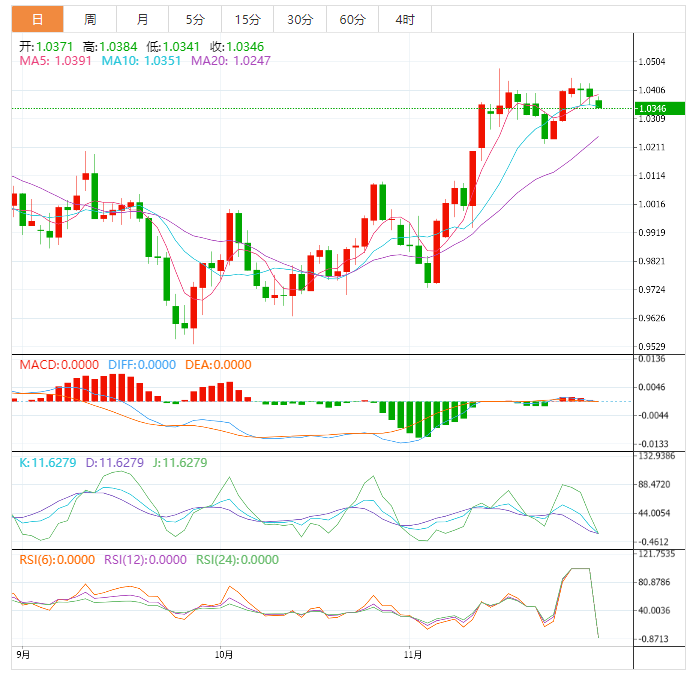 周一盘中,美元指数小幅上涨,目前交投于106.35附近,延续上周五涨势;上周五美元指数小幅反弹,主要是受到逢低买盘的支撑,另外非美货币的多头在感恩节假期获利了结,非美货币上周五普遍小幅回落。