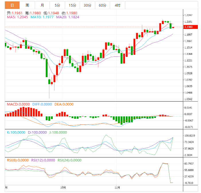 日内重点关注,欧元区11月经济景气指数,欧元区11月工业景气指数,欧元区11月消费者信心指数终值,德国11月CPI年率初值,加拿大9月季调后GDP月率,美国11月谘商会消费者信心指数。 需要关注的大事件包括欧洲央行副行长金多斯发表讲话, 英国央行货币政策委员曼恩发表讲话,英国央行行长贝利在上议院做证词陈述。