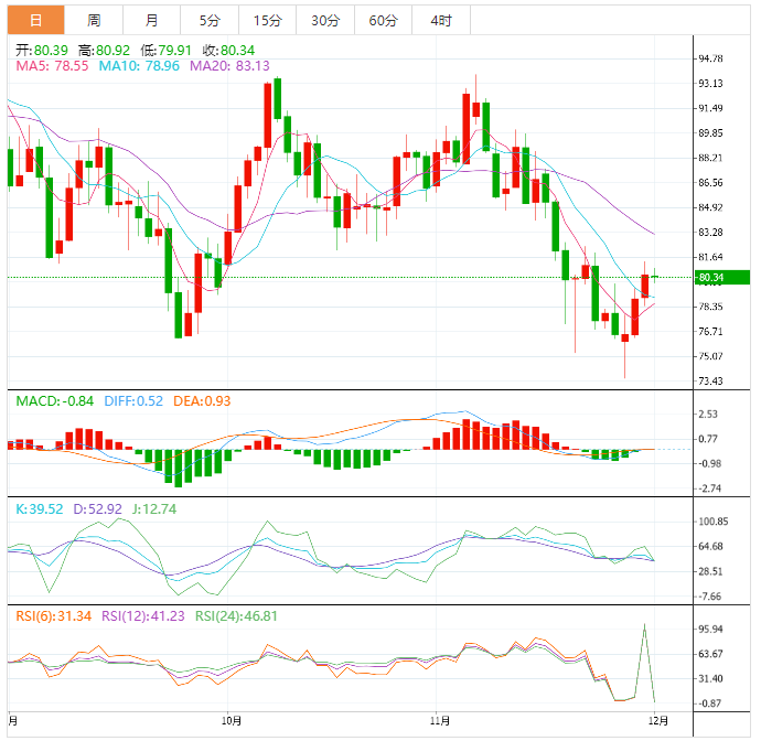 支撑位:78.94 77.21 75.97