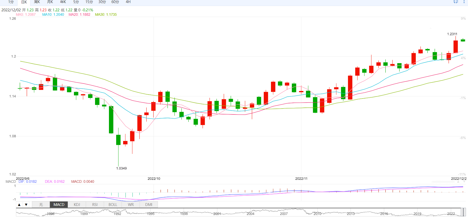 美元兑日元在近四个月最低水平盘整近期跌幅,美元兑日元从135.03反弹至135.50。美元兑日元最近的反弹可能与日本央行行长黑田东彦(Haruhiko Kuroda)的讲话和美国11月关键就业数据公布前的谨慎情绪有关。最近,日本财务大臣铃木俊一(Shunichi Suzuki)表示,他将继续密切关注外汇市场的动向。在他之前,日本媒体《朝日新闻》援引日本银行董事会成员田村直树的话说,“日本银行应该对其货币政策框架和2%通胀目标的可行性进行审查。”美元兑日元的反弹似乎难以实现,除非该报价保持在5月底的上一个支撑线之上,即截止发稿时在137.70附近。也就是说,200日移动均线限制该货币对的近期下行位在134.50附近。