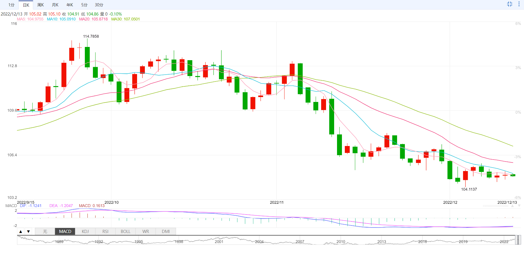 支撑位:104.69 104.38 104.1
