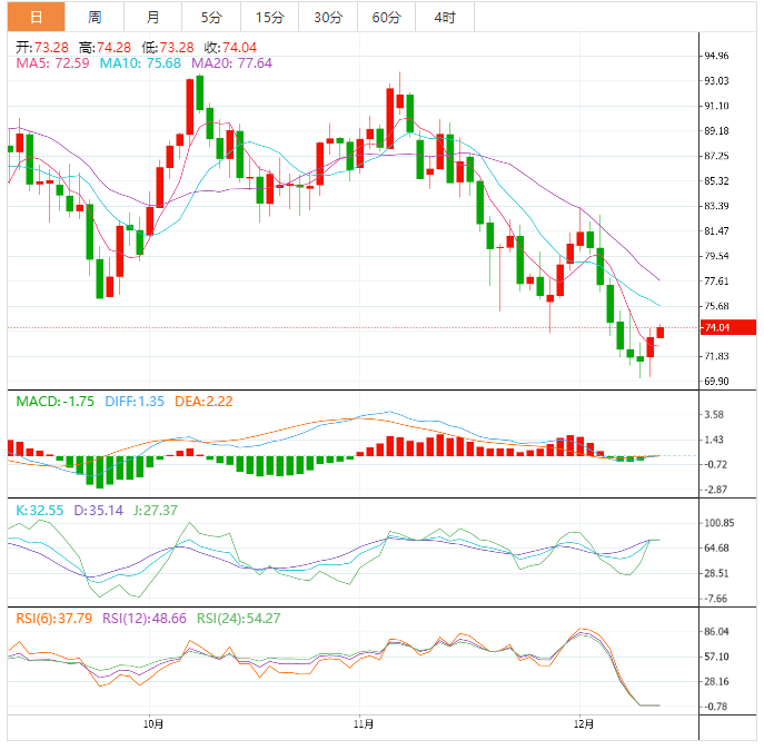 阻力位:74.88 76.22 78.43