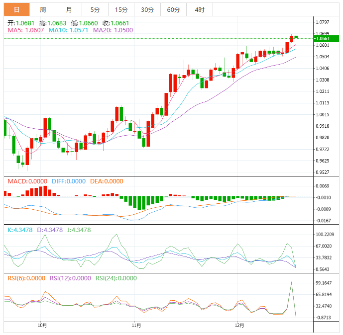 本交易日将是一个超级交易日,欧洲央行利率决议和英国央行将携手来袭,市场预计均加息50个基点,此外,本交易日还将出炉美国11月零售销售数据(俗称“恐怖数据”)、美国11月工业产生数据和初请失业金人数变动数据,市场对美国零售销售数据的预期不佳,令美元指数面临进一步下行风险;不过,美元指数在6月16日低点103.41附近支撑较强,需要重点关注。