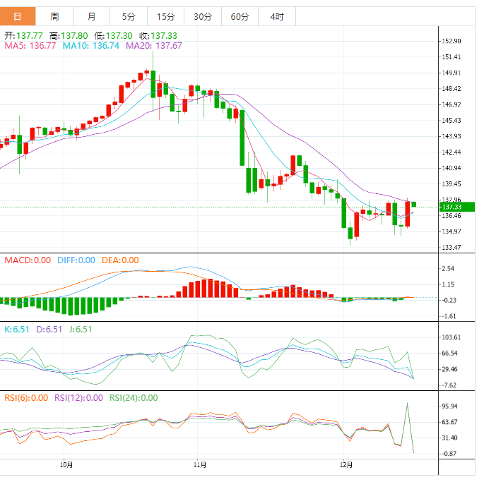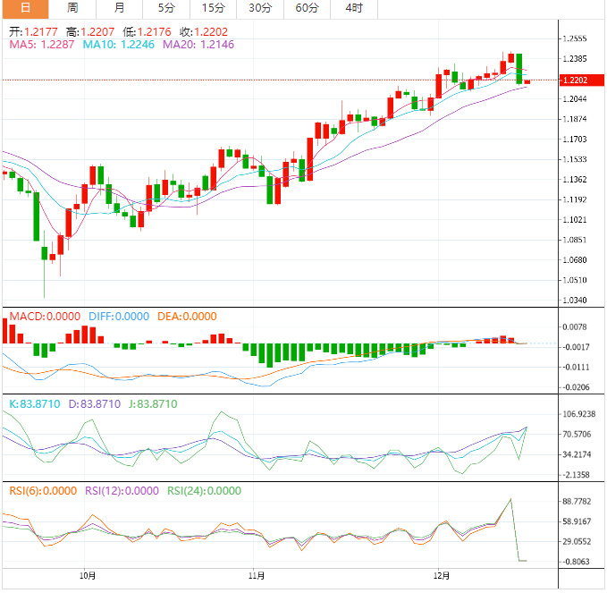 美元指数周四盘中一度收窄涨幅,此前的数据显示,美国11月零售销售下降幅度超过预期,而劳动力市场仍然紧张,上周初请失业金人数下降。欧元兑美元稍早在欧洲央行公布利率决定后上涨至1.0737美元,为6月9日以来最高,随后回落至1.0629美元,周四收跌0.5%。美元指数周四收涨0.95%,收报104.60。英镑兑美元周四也大幅下跌,因为投资者认为英国央行已经接近加息的终点,收盘下跌了近2%,收报1.2177美元,为近一个半月最差表现。