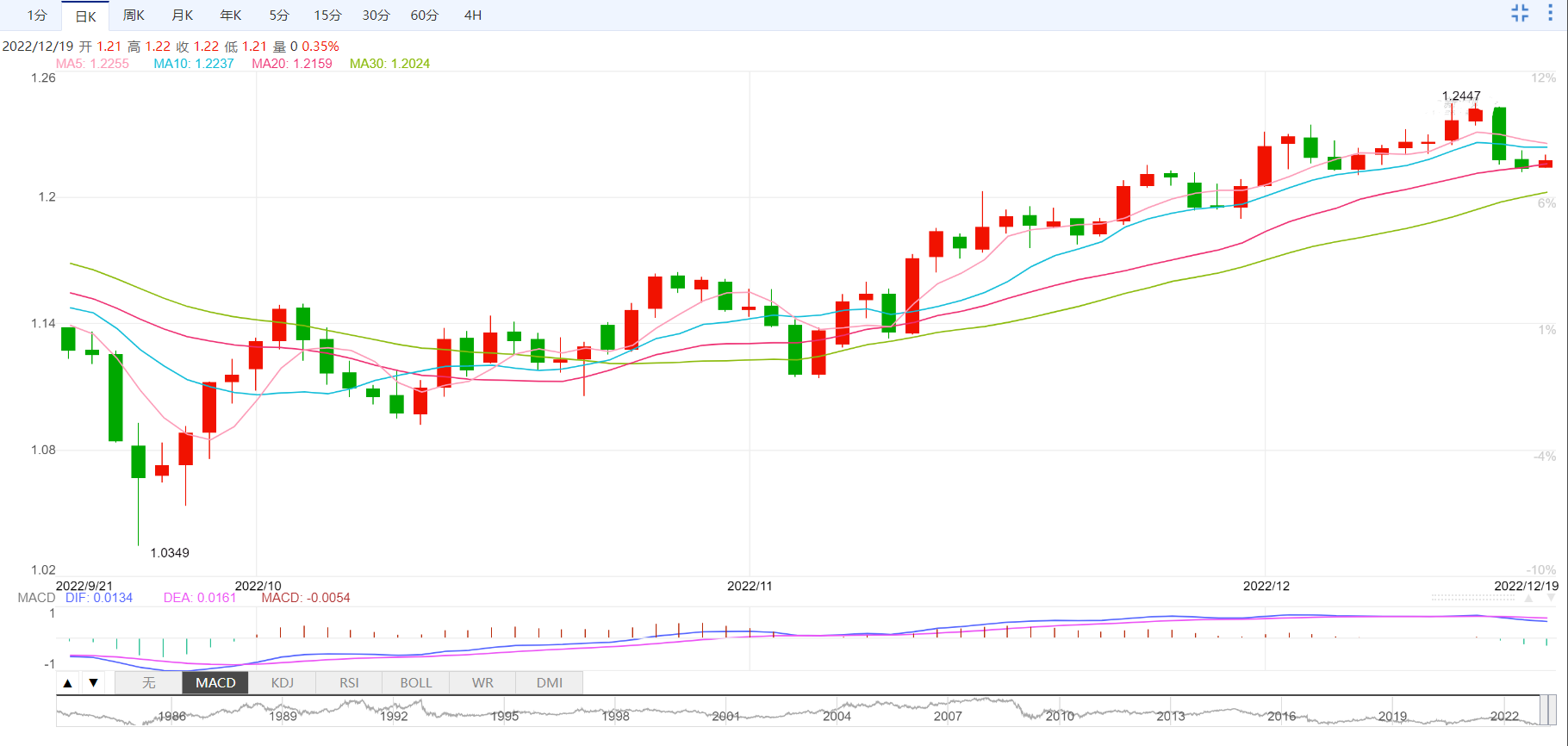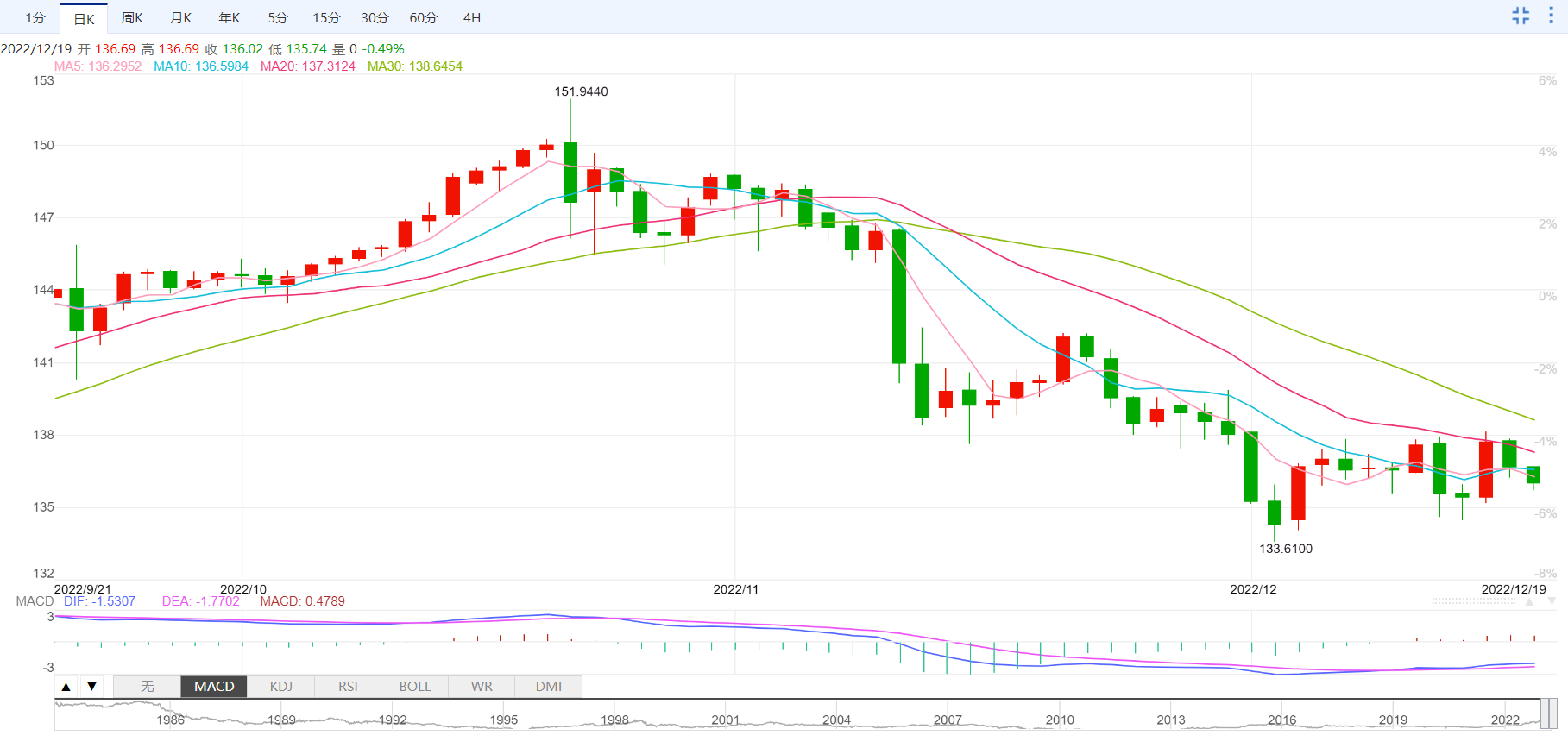 美元指数录得三日内首日下跌,盘中下跌0.20%至10.455附近。在此过程中,DXY难以证明克利夫兰联邦储备银行行长Loretta Mester和纽约联邦储备银行行长John Williams最近的鹰派言论是正确的。其原因可能与週五美国12月PMI初值的不乐观数据,以及美联储0.50%的加息有关。