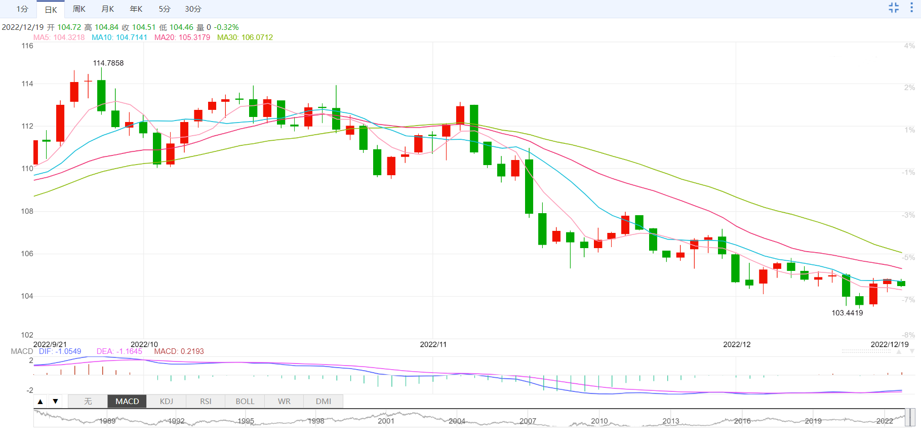 美元指数:截止发稿,美元指数下跌,现报104.42,跌幅0.36。欧市盘前,美元指数下跌至104.70,在本周开局疲软的情况下暂停了两天的上升趋势。在这种情况下,美元相对于六种主要货币的指标出现了轻微的下跌,即使美国联邦储备委员会(美联储)的政策制定者在他们的最新言论中表现得强硬。今日交易清淡可能会限制美元指数的走势,这反过来又凸显了新的冲动的风险催化剂。