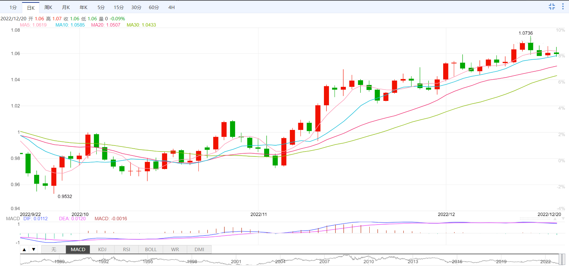 路透社报导称,澳储行在12月的政策会议上考虑维持利率不变,理由是迄今为止激进紧缩政策效应出现滞后,以及不确定环境下谨慎行事有好处。澳储行董事会在今年的最后一个决议的决策当中考虑三个选择,即加息50个基点、25个基点或暂停加息,但加息25个基点的观点佔据上风。澳元/美元在0.6665附近刷新盘中低点,逆转周初的反弹行情,空头回归。接近0.6895的月度高点和0.6900的整数位可以充当额外的上行障碍,之后将指引澳元兑美元指向8月高点0.7135附近。