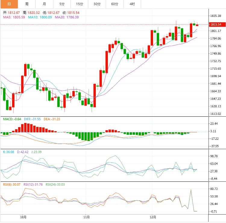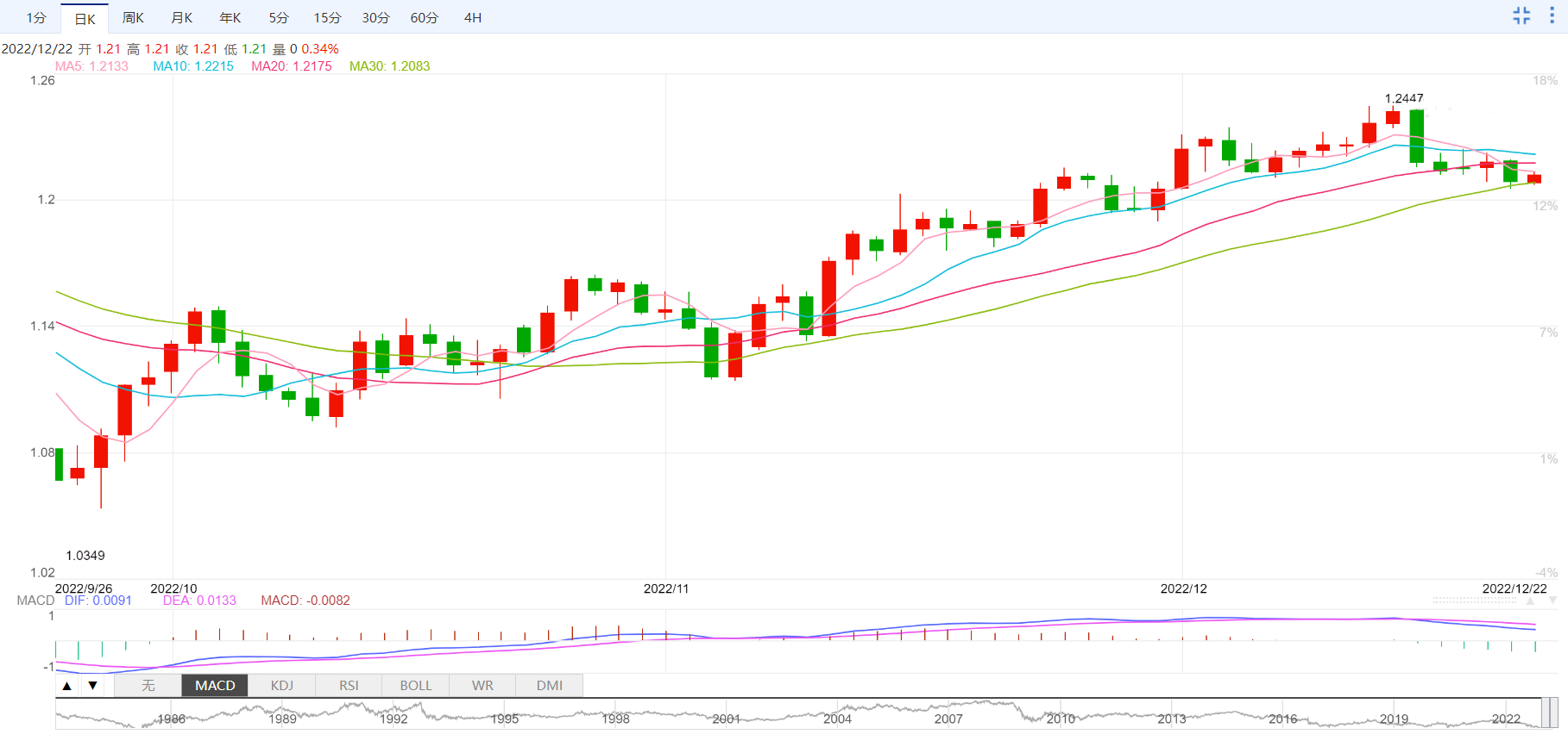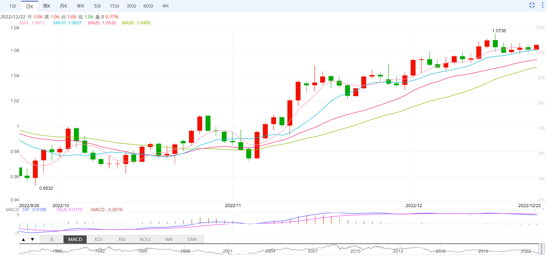 技术面:欧元/美元上涨的是MACD信号看涨和相对强弱指标(14)坚挺,以及多头维持在50指数移动均线上方。欧元/美元创下的月线高位1.0735附近,然后是12月01-19日走势的61.8%1.0760附近,将成为上行目标。另外,处在1.0600附近的50均线水平成为欧元/美元短线支撑。 12月1日以来的上行倾向趋势构成支撑。
