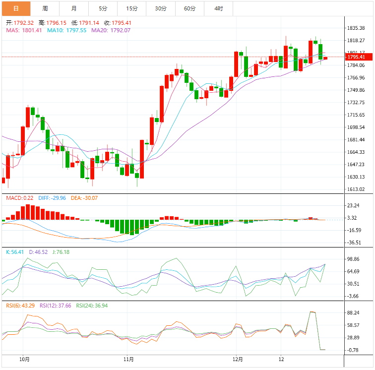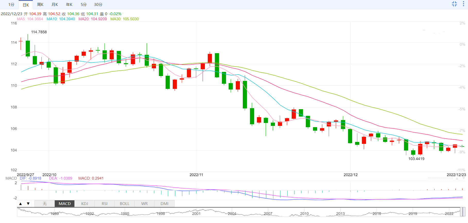 美元指数:截止发稿,美元指数下跌,现报104.35,跌幅0.05%。欧市盘前,美国参议院通过了1.7万亿美元的政府融资法案,以及美国总统拜登显示准备遏制通胀的最新言论,仍让美元指数多头抱有希望。展望未来,市场的谨慎情绪可能会在美国核心个人消费支出(PCE)价格指数(美联储首选的通胀指标)以及11月耐用品订单发布之前限制美元指数的立即走势。