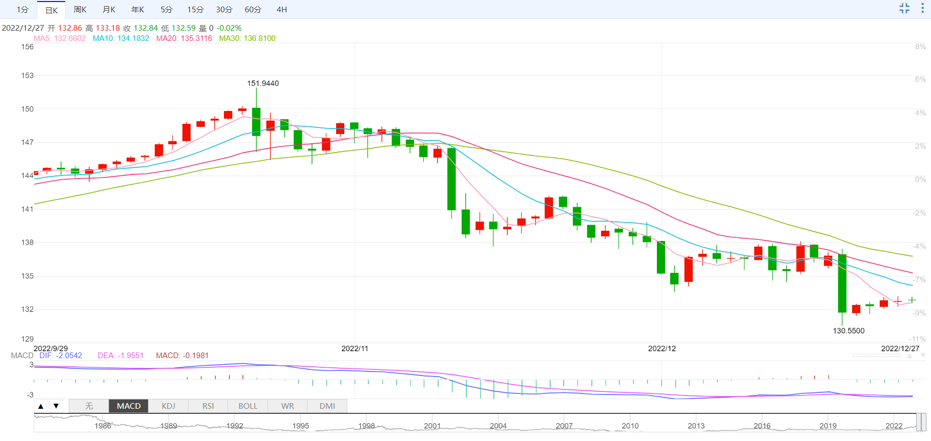 美元/日元维持疲弱处在132.90附近,出现四个月来的首次下跌。在这期间,美元/日元验证跌破一周上升趋势线,以及美元/日元自100小时指数均线出现U型反转的信号。相对强弱指标(14)回调,且相对强弱指标未现超卖,美元/日元也验证这些信号。也就是说,美元/日元指向12月15日至20日跌势的23.6%斐波位132.30附近。