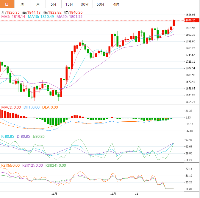 技术面:金价已经突破4小时图上升三角形形态。上述图表模式的水平阻力位处在12月13日高点1,824.55美元,而上行倾向趋势线处在12月16日低点1,774.36美元。与此同时,相对强弱指标(14)已经从40.00-60.00范围转移到看涨范围60.00-80.00,这表明金价后市存在更多上涨空间。