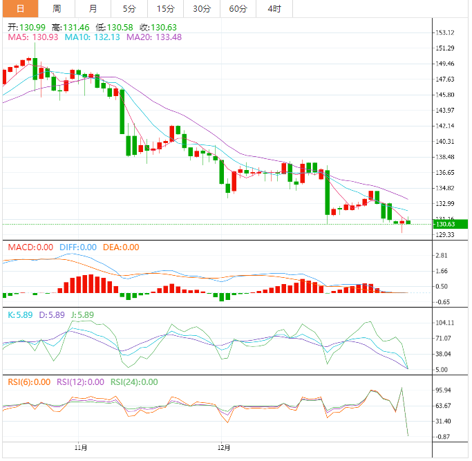 荷兰合作银行:美元/日元若收于130.41下方,将可能跌向126.36