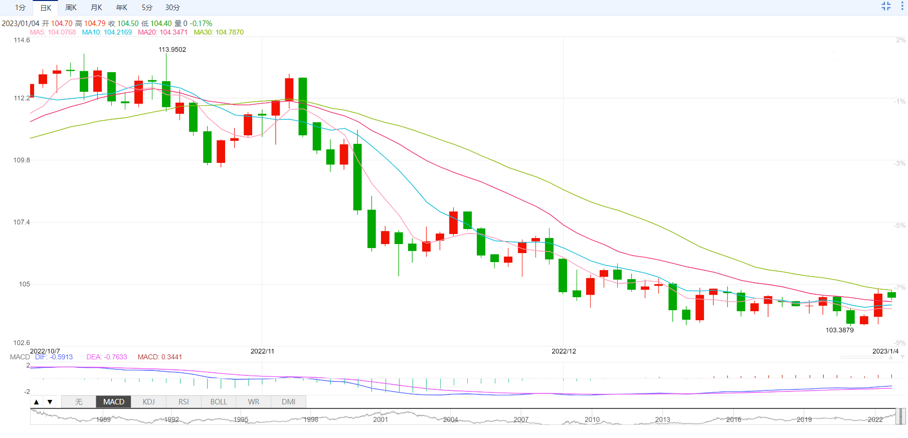 支撑位:103.81 102.94 102.42