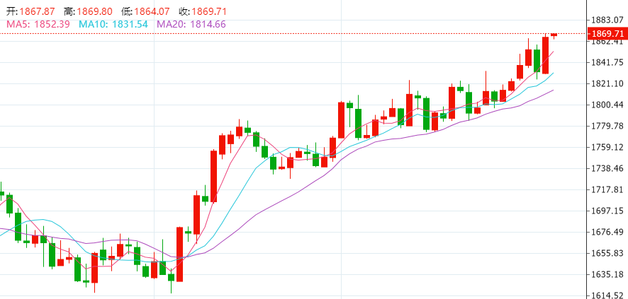 上周五,在缓步降温的非农就业数据和大不及预期的美国12月ISM非制造业PMI助推之下,现货黄金于美盘时段大涨超30美元,最终收涨1.77%,报1865.71美元/盎司;现货白银随黄金上行,最终收涨2.57%,报23.81美元/盎司。