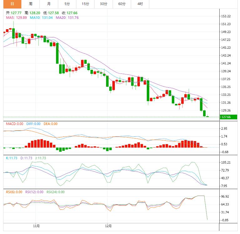 欧元兑美元上周五盘尾下跌0.2%,收报1.0832美元,从稍早创下的九个月新高回落。英镑对美元上周五上涨0.3%,收报1.2234美元。上周四美元兑日元大跌2.37%,上周五美元兑日元下跌1.11%,盘中最低触及127.45,为2022年5月31日以来新低,收报127.85附近。