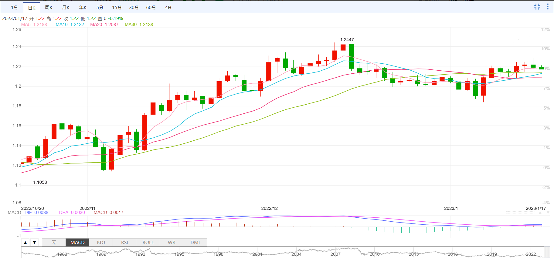 欧元兑美元继续在1.0830附近窄幅震荡。由于风险状况不明朗,美元兑美元表现平平,因美国市场将于周二开盘,此前美国市场经历了漫长的周末交易。这种资产的波动性收缩可能会在未来爆发。由于欧洲中央银行(ECB)计划在今年夏天达到利率峰值,欧元有望成为人们关注的焦点。彭博社的一项民意调查显示,欧洲央行行长拉加德预计将把利率提高到3.25%。欧洲央行将宣布在2月和3月加息50个基点,并在5月加息25个基点,这将支持欧洲央行从目前2%的利率实现最终利率。