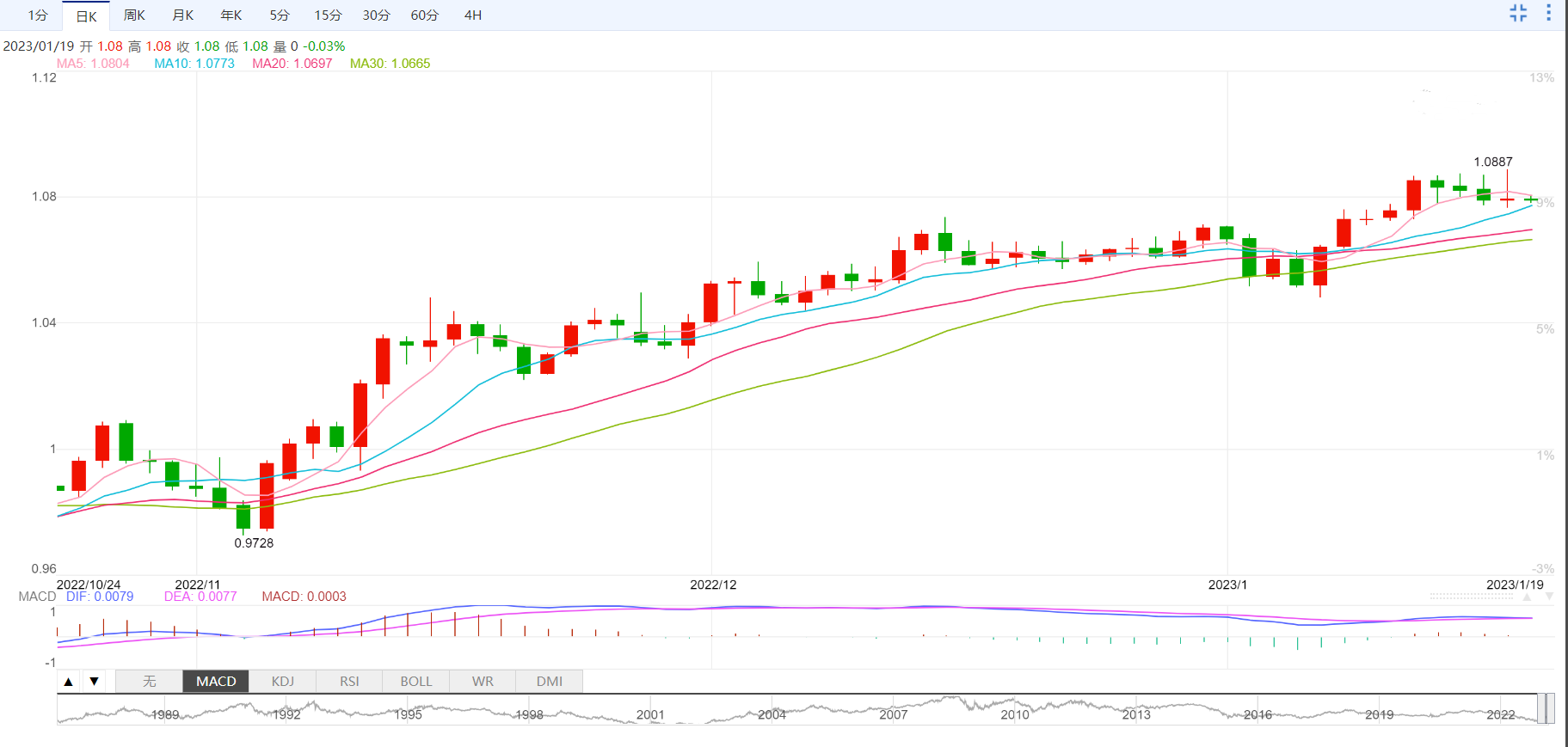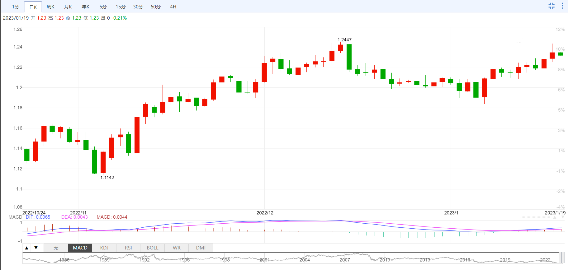 欧元/美元承压于关键阻力位1.0800下方。市场正观望欧央行行长拉加德讲话,以寻求新的催化剂,欧元/美元已经维持盘整。欧元区方面,欧央行行长拉加德讲话将为2月份可能採取的货币政策行动提供新的线索。早前彭博社报导称,欧洲央行政策制定者2月可能加息50个基点后,开始考虑放缓加息步伐。“能源价格下降驱动的整体通胀迅速回落,给了欧洲央行一点喘息空间,但政策制定者目前仍将关注持续存在的通胀上涨潜在压力。 ”
