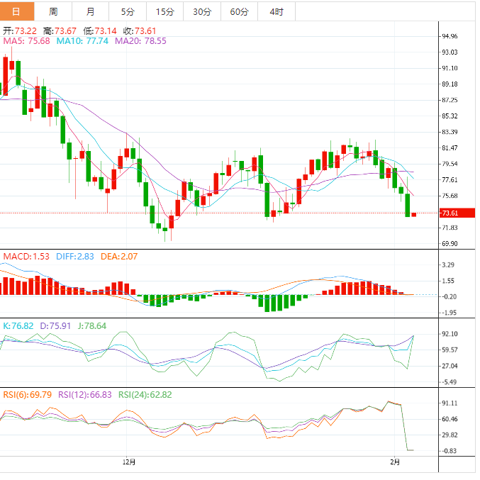 技术面:看跌的MACD信号从2022年12月初开始加入之前的支撑线,挑战WTI的复苏。金属持续走软至100日移动均线下方,可能会增加看跌偏见的力量。回调可能会重新测试由12月中旬以来的多个水平组成的水平区域,接近73.40美元。