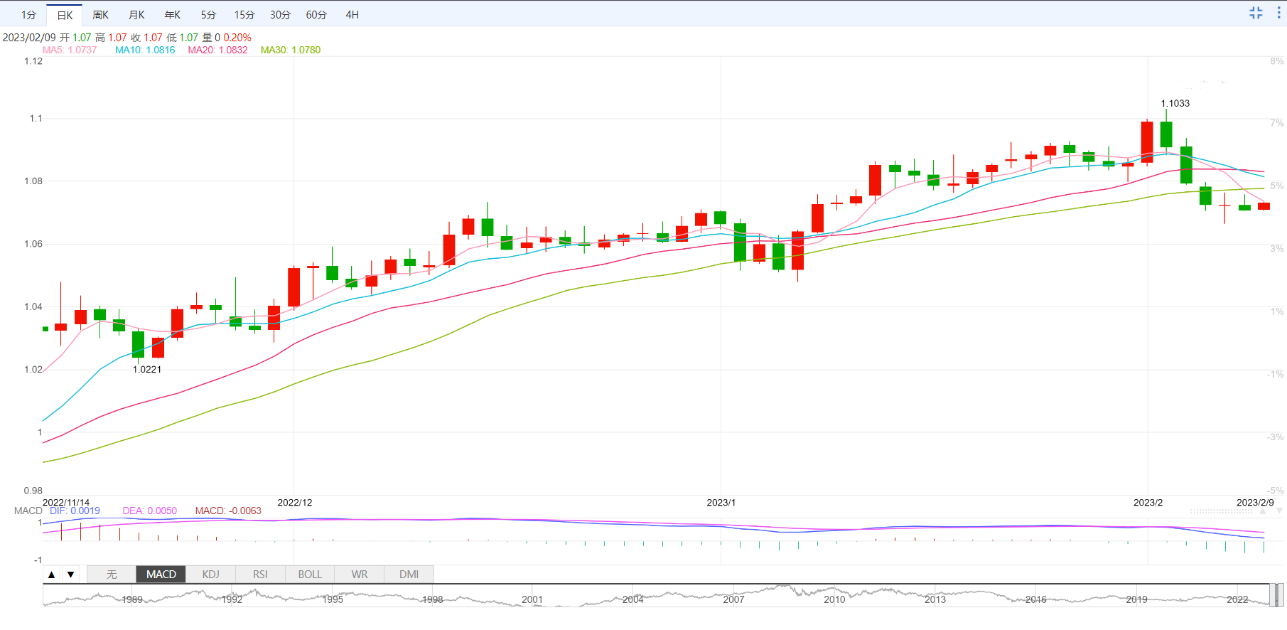 美元指数:截止发稿,美元指数下跌,现报103.23,跌幅0.23%。欧市盘前,美元指数跟随美债收益率下跌逆转前日反弹行情,盘中下跌0.11%报103.35。不过10年期美债收益率在周三自1个月高点反转以结束三日上涨,目前承压于3.61%附近。值得注意的是,由于缺乏重大数据/事件,加上围绕美中之间最新地缘政治紧张局势的复杂担忧,美元兑六种主要货币的指标受到了影响。