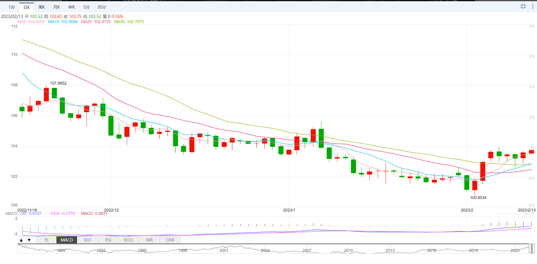 后市需要关注美元指数走势,若收于104以上将使得升向105的动力增加。