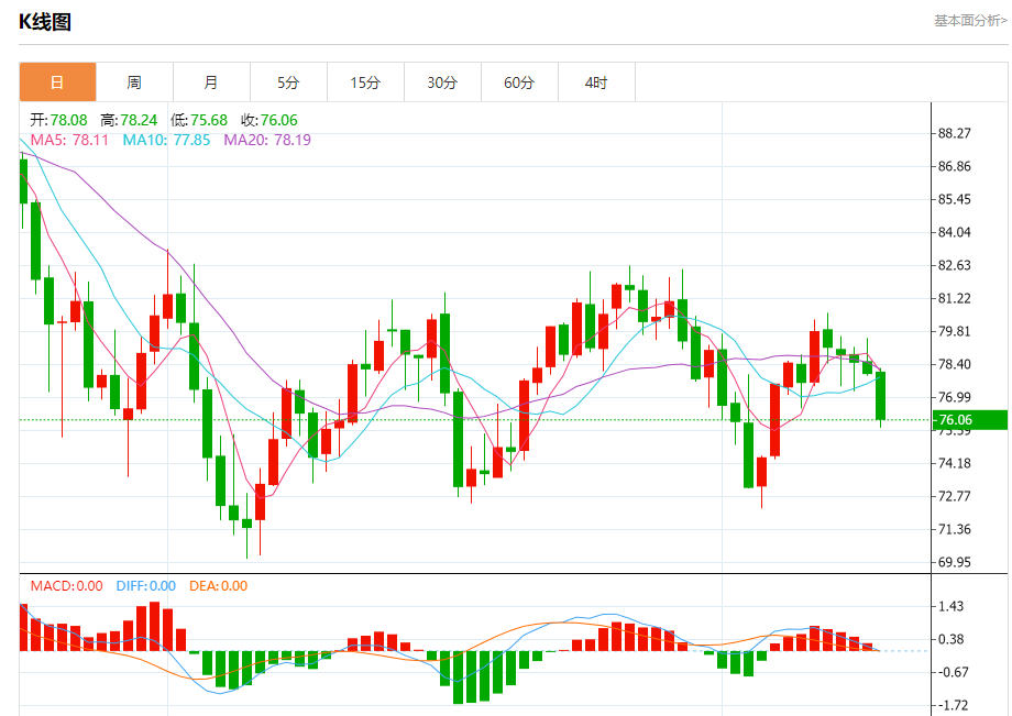 原油市场:截止北京时间21:12,美油下跌,现报76.16,跌幅2.36%。纽市盘前,原油价格强势突破双顶形态的颈线,以获得强大的负面动机,支持今天剩余时间继续看跌,并且实现我们等待的主要负面目标75.65的道路是开放的。