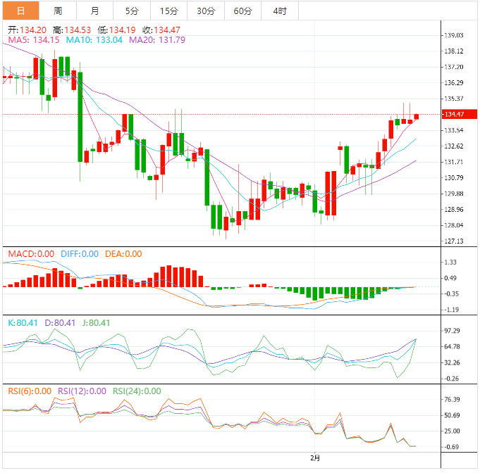 支撑位在1.05,1.0460(去年9月低点至今年2月高点的38.2%斐波那契回撤位)。而阻力位在1.0675(23.6%斐波那契回撤位),1.0720(50日移动均线)和1.08(21日移动均线)。