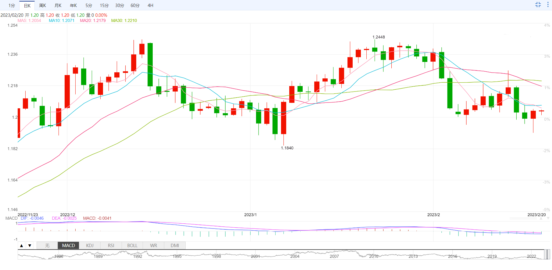 英镑/美元空头缺席后,今日空头回归,英镑/美元接近1.2000心理关口,下跌0.20%处在1.2020附近。在这期间,MACD信号看跌,英镑/美元自一月初以来的前期支撑回调。值得注意的是,2022年11月9日以来,英镑/美元未能突破支撑位反转的阻力,加大汇价下跌倾向。自此之后,处在1.1900整数关的100日移动均线,可能成为英镑/美元多头的最后防线,然后将主导权交给空头,进一步下跌当中,空头指向1月低点1.1840。