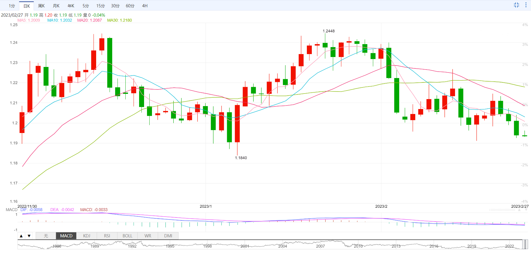 英镑前日自1月初以来的上行支撑线以来的反弹行情消退,同时RSI超卖。不过汇价持续交投于200日SMA下方且MACD信号看跌令英镑兑美元空头有望突破1.1930的短期支撑位。之后,月度低点1.1915和1.1840可能充当额外下行支撑位,然后为英镑兑美元2022年9月高点1.1740。若空头突破1.1740,10月底顶部1.1645和1.1500可能吸引空头。另一方面,一周下降阻力线接近1.20心理关口,限制汇价短期反弹。